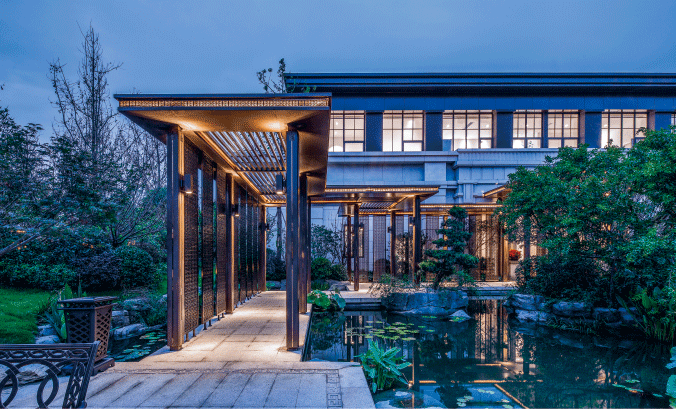 取《蘭亭集序》園林意境,完美融合東方美學和現(xiàn)代建筑手法,賦予項目深厚的文化氣質。